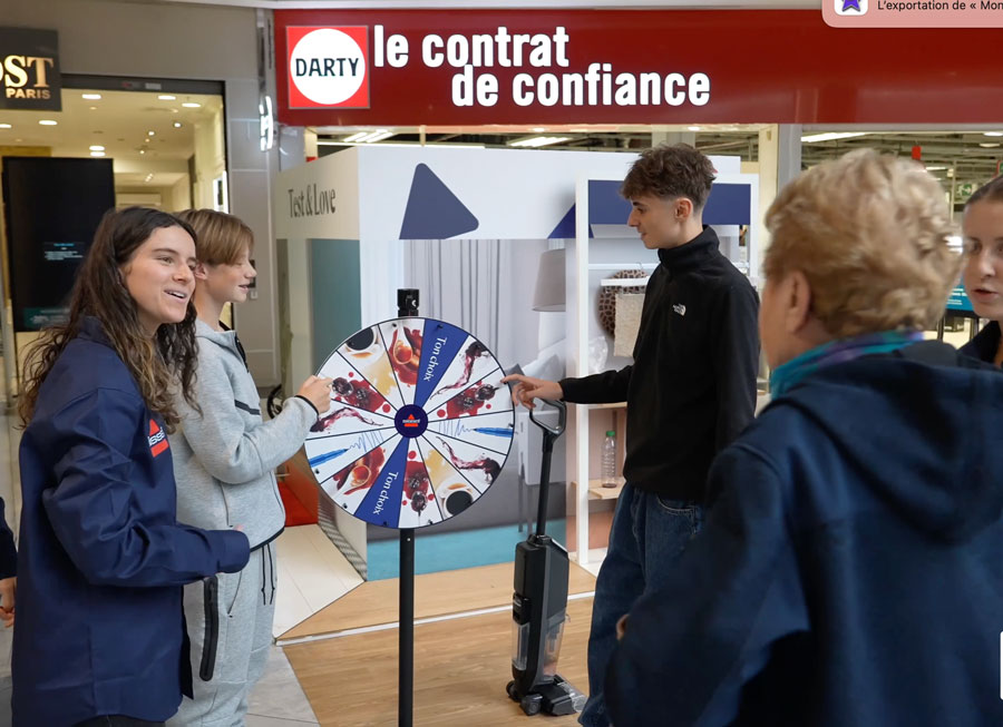 Au cœur des centres commerciaux, le dispositif prenait la forme d’un espace immersif 100 % brandé. Objectif : capter l’attention, maximiser le temps d’exposition et transformer le flux en opportunités d’engagement.