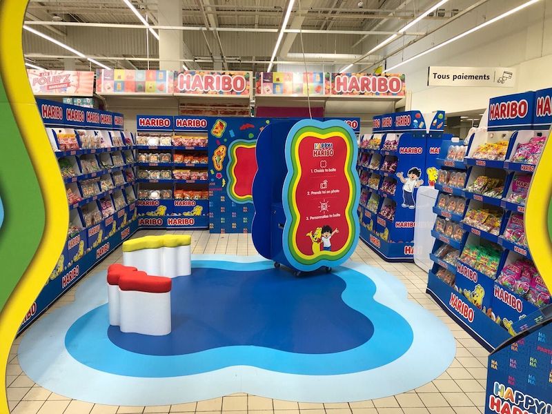 Et dans certains magasins, la présence de la mascotte Haribo vient sublimer l’expérience, créant un moment de convivialité partagé entre petits et grands.