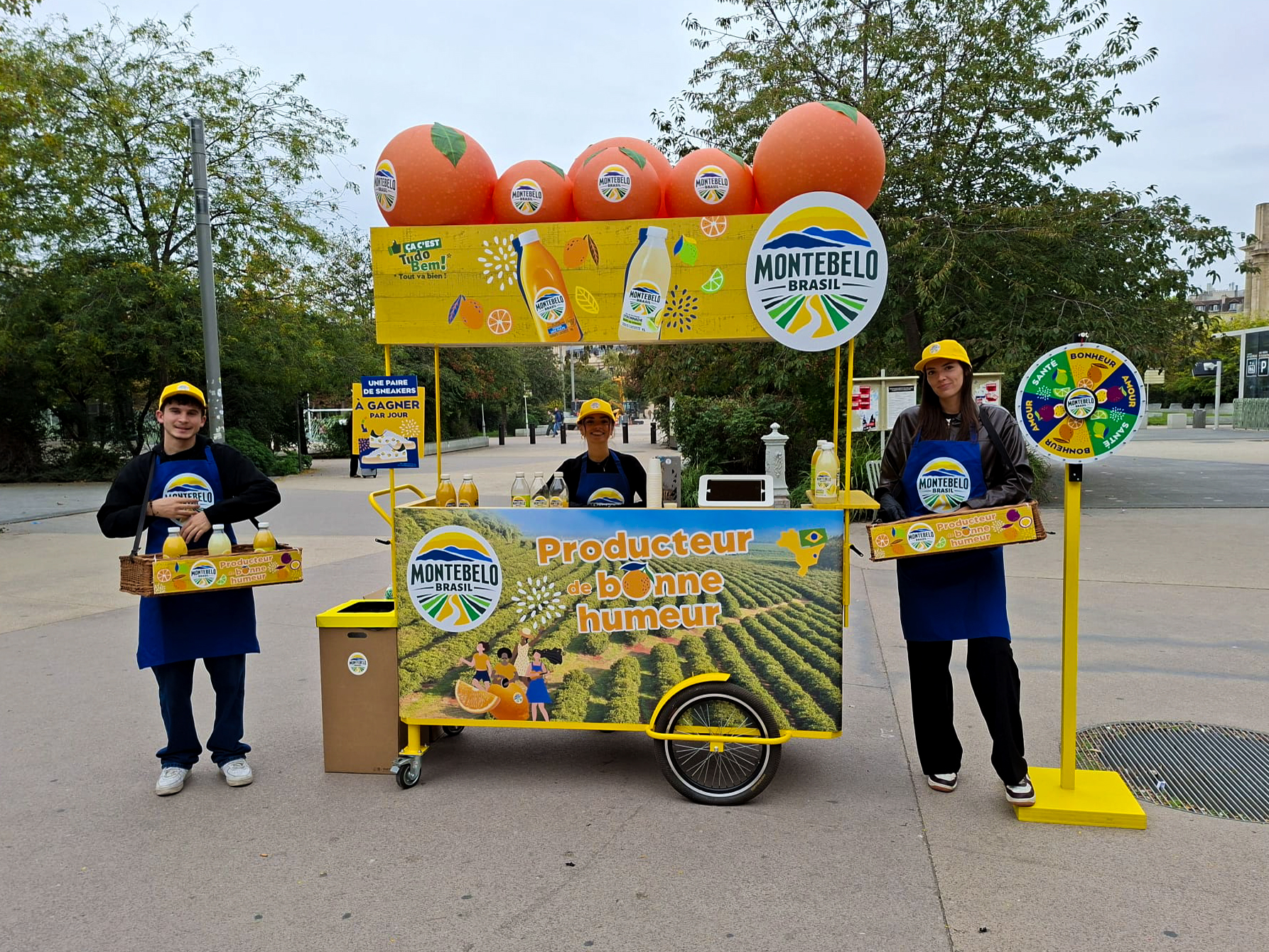 Nos experts ont imaginé un dispositif mobile et tactique, mêlant dégustation de jus frais, animation samba et jeu participatif, pour faire vibrer les passants à l’image du Brésil.