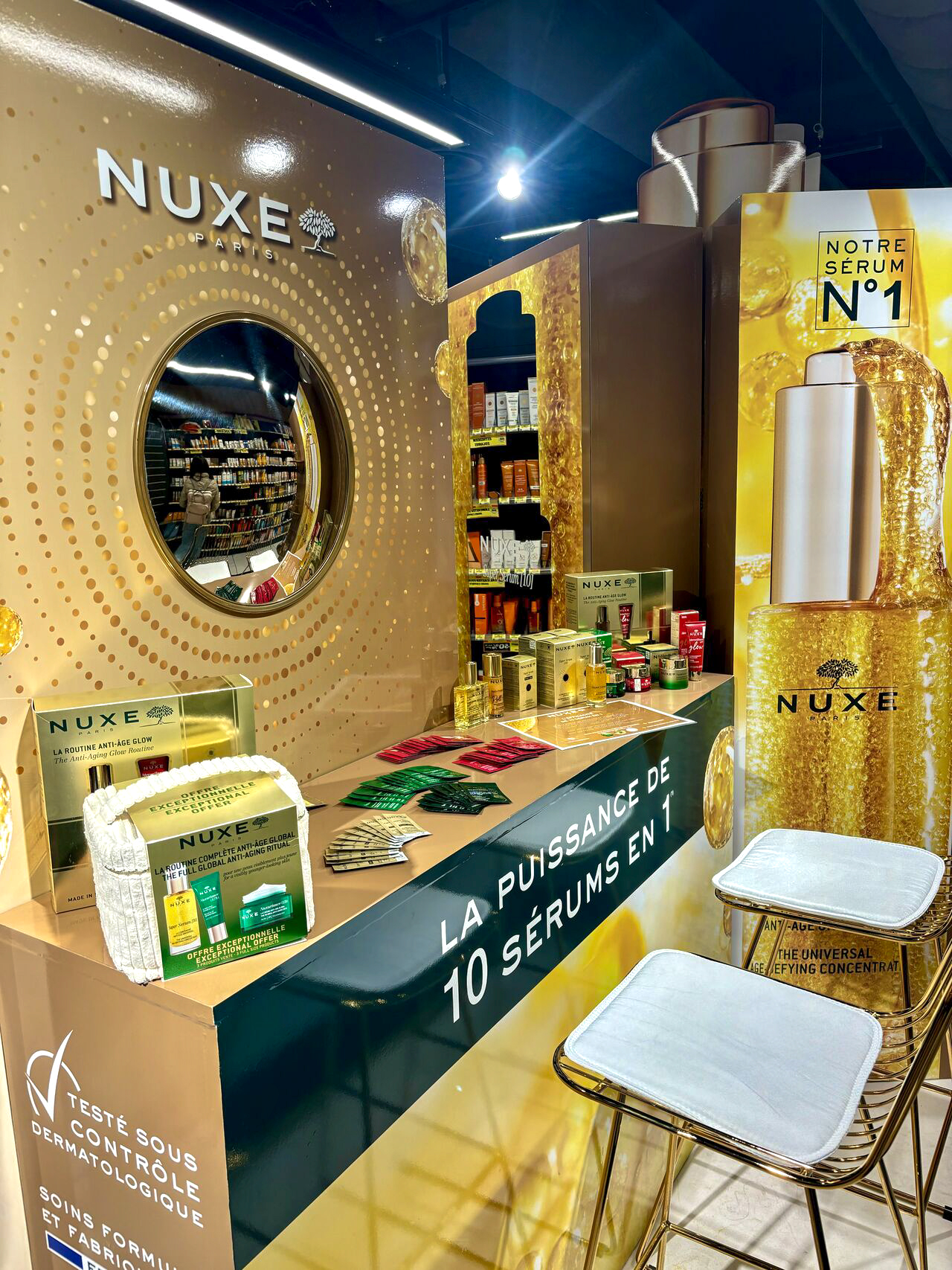Un choix de canal hautement stratégique pour renforcer la visibilité de l’innovation produit en situation d’achat. Mais surtout, faire vivre ses bénéfices anti-âge puissants, et affirmer le positionnement premium-sensoriel de NUXE.