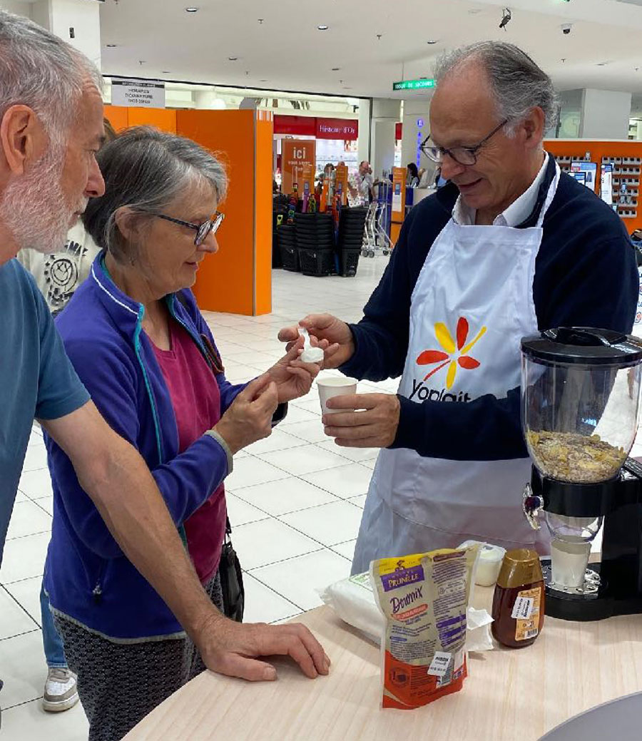 En effet, chaque visiteur est invité à composer son yaourt sur mesure, avec le topping de son choix. Une parenthèse plaisir qui transforme le linéaire en véritable espace de découverte et d’émotion.