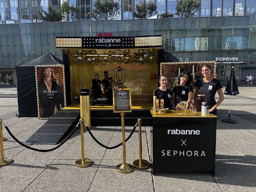 - Des ambassadeurs de marque incarnant l’univers du parfum et distribuant des échantillons.
